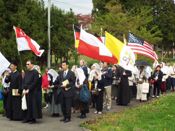 PA_41_2016 Publicado 27/05/2016 às 600 × 450 em PEREGRINAÇÃO DA FSSPX À NAGASAKI E AKITA (JAPÃO) – 2016 Peregrinos na entrada do convento