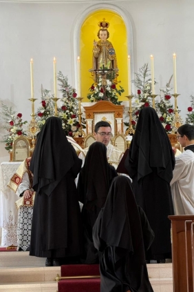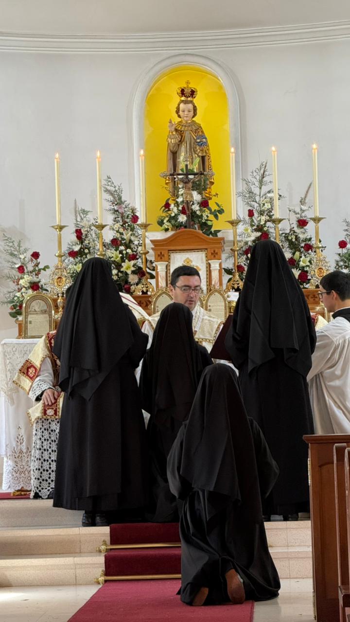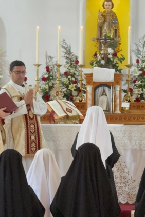 Quasimodo geniti infantes… Durante a Missa solene celebrada pelo Padre Cortés, assistido pelo Padre Utrilla e pelo Padre Caliri, 2 noviças fizeram seus primeiros votos. As 23 religiosas presentes cercaram com grande alegria suas irmãs mais novas.